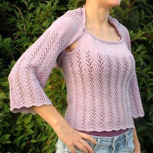 This Lilac lace shrug looks so elegant that I feel like dropping the project that I am working at the moment and start knitting this shrug. It is beautifully lacy but I wonder if somehow I can use ribbon in this pattern because I like ribbons. I wonder if someone could help me on this.