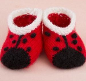 Watch out, your little bug will fly away wearing these sweet, easy knit baby booties. The Little Lady Bug Baby Booties are the perfect finishing touch to the Little Lady Bug Baby Set. These precious baby lady bug booties will keep baby's feet warm as she toddles around the house. They're perfect for baby's first Halloween, but the Little Lady Bug Baby Booties are so cute you might want to knit them for a year-round shoe.