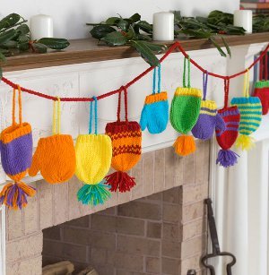 Looking for unique mantle decorating ideas this holiday season? Look no further than the Cheerful Snow Gear Garland. This festive DIY Christmas garland is a delightful string of miniature hats and mittens. If you've been wondering how to decorate a mantle with warmth and cheer, this garland pattern is the one for you. Bright and colorful, the Cheerful Snow Gear Garland makes a great backdrop for family photos and warm, crackling fires.