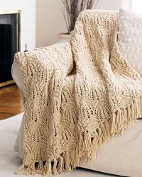 Everything looks better with lace! Use this free knitting pattern to make this beautiful lace afghan. The fringed detail on the bottom is a nice design element.