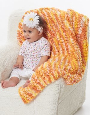 With just one skein of Bernat Tiny Tickles yarn, you can create this bright and cheerful knit baby blanket. The One Ball Baby Blanket makes a great last minute present for a first birthday, baby shower, or any other impromptu (or forgotten) celebration for a tiny little one. This incredibly soft and plush baby blanket knitting pattern would look lovely draped over a crib or folded on top of a rocking chair.
