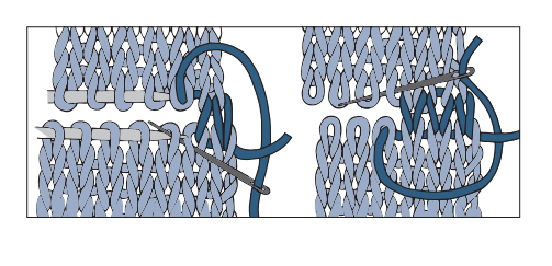 Fold last row of Hood in half. Graft 2 sets of 12 sts tog.