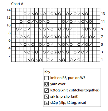 Next Rows: Repeat Rows 1-2, continue to work Chart over stitches indicated until piece measures 18” (46 cm) from cast on edge. End with a Wrong Side row.