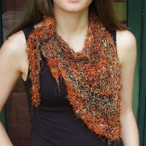 Get ready for spring with the lovely Silk Bandana Scarf. This beautiful recycled silk knit scarf pattern is bursting with springtime freshness and is just begging to be worn with a light top and jeans. This lacy scarf is knit in a triangular shape so it drapes nicely and lies flat against whatever you're wearing. We love the warm myriad of oranges and browns shown in the picture, but feel free to choose any color recycled silk yarn to make your own Silk Bandana Scarf.