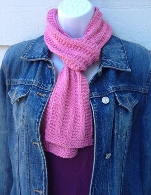 The Uptown Girl Scarf is a quick and easy knit scarf pattern perfect for knitters who know only a few stitches. Using just knit, purl, and slip stitches, this pretty pink scarf is well-suited for mindless TV knitting. Pair it with a plain t-shirt and jean jacket as shown in the picture or add the perfect finishing touch to a casual day dress. The Uptown Girl Scarf is a effortlessly elegant way to layer for warmth and style.
