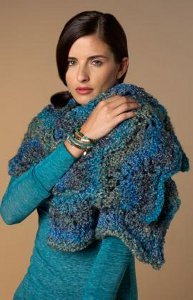 This is a pretty shawl pattern and not too hard to make. With the super bulky/super chunky yarn and big needles it should work up quickly. I love the colors in the photo but I'm sure it would look good in any self-patterning yarn, or even in a solid color yarn. I'm thinking a deep purple or dark brown would be great!