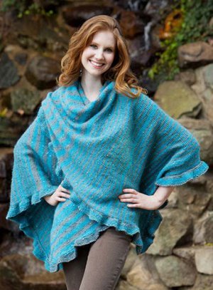 With a simple stockinette stitch body and a subtly ruffled hem, this stylish knit wrap pattern is sure to become a wardrobe staple. The over-sized fit and casual elegance of Marly's Favorite Wrap make it the perfect piece for on-the-go glam. Knit with Deborah Norville Fashion Jeweltones Yarn, this knit wrap pattern has a slight luster that catcher in the sunlight. We love the girly glimmer of the yarn shown in the picture, but any other worsted weight fiber would deliver equally pleasing results.