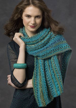 Wrap yourself in a sea of calming blue and green hues while wearing this beautiful knit shawl pattern. The Ocean Elegance Shawl is a lacy wonder you'll love being able to say you made. This beautiful lace shawl pattern will keep novice knitters interested from cast on to cast off, but it's a fun piece for more advanced knitters as well. Wear the beauty of the sea around your neck with the gorgeous Ocean Elegance Shawl.