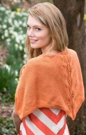 Featuring a pretty lace pattern down the center back, this classic knit shawl pattern is sure to become a treasured wardrobe staple. The Peachy Shoulder Shawl boasts an elegant drape and hangs perfectly around the shoulders for a warm, functional knit. We love the bright peach color as shown in the picture, but any other sport weight yarn would look equally as lovely.