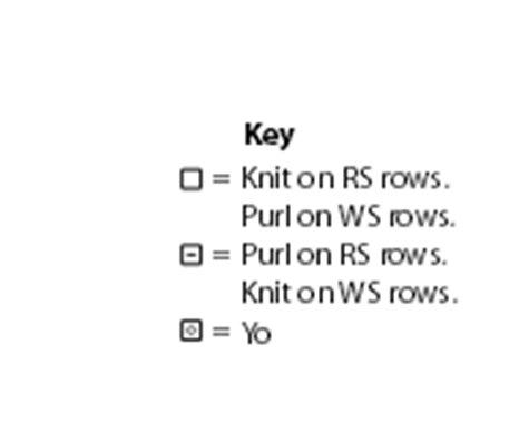 1st row: K2. yo. K1. *yo. ssk. K1. K2tog. yo. K1. Rep from * to last 2 sts. yo. K2. 25 sts.