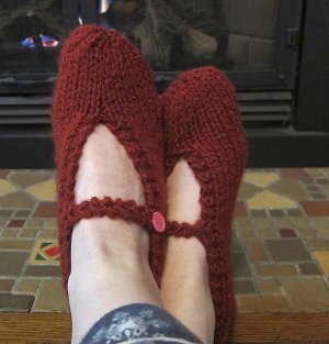 I like this pattern because I prefer to knit with straights, and also looks a bit easier to slip into than a full slipper. And they're pretty economical using only one ball of yarn.