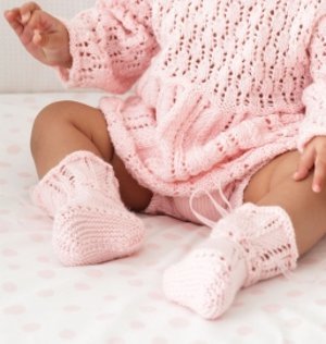 Featuring a high cuff to keep baby's ankles warm, the Sweetheart Baby Booties are a lacy gem you'll treasure long after she has outgrown them. These darling knit baby booties require just one skein of fingering weight yarn and a bit of scrap ribbon for a unique finishing touch. These lacy booties make a great project for knitters who are looking for a slightly more challenging pattern.