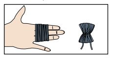 Wind yarn around 3 fi ngers approx 60 times. Remove from fingers and tie tightly in center. Cut through each side of loops. Trim to a smooth round shape. Attach to each point of Hat.