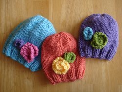 I like to put flowers on many of my knitted hate--GREAT HINT--sew the flower to a BUTTON ---then you can switch them from hat to hat or put several on one hat