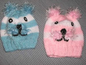 Knitting for babies is always fun, but this knit baby hat pattern is especially enjoyable. The Playful Kitty Baby Beanie is a fun way to keep baby's little ears warm all year long. This simple pattern features a simple stockinette stitch construction with simple fun fur yarn appliques. The Playful Kitty Baby Beanie makes a great option for dress-up.