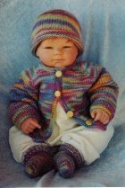 Stop the search. The Paintbrush Baby Set is the only knitting pattern you'll ever need for your tiny bundle of joy. With instructions for a knit baby hat, baby booties pattern, and matching baby cardigan pattern, your baby will be the best dressed at the nursery. This cute and colorful baby set looks darling in a color-changing yarn (as shown in the picture) or a solid colored fiber for a classic look.
