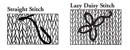 With A, embroider flowers by working 9 lazy daisy stitches radiating out from one point.
