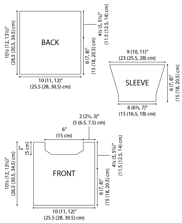 Notes: Front and Back are worked separately then joined at the shoulders. Sleeves are worked down from the top.