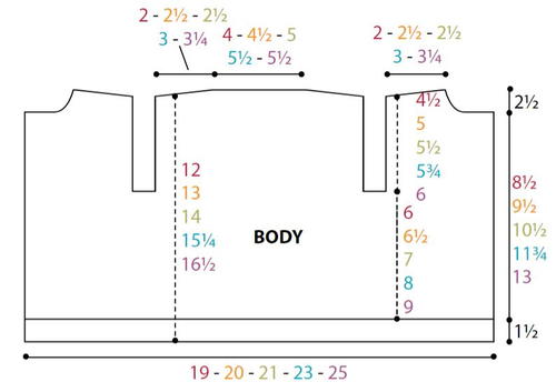 Finished SizeSizes to fit chest measuremen: 6 mos - 17" [43 cm]; 12 mos - 18” [45.5 cm]; 18 mos - 19” [48 cm]; 2 yrs - 21” [53.5 cm]; 4 yrs - 23” [58.5 cm]. Finished chest: 6 mos - 19” [48 cm]; 12 mos - 20” [51 cm]; 18 mos - 21” [53.5 cm]; 2 yrs - 23” [58.5 cm]; 4 yrs