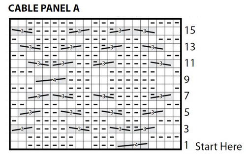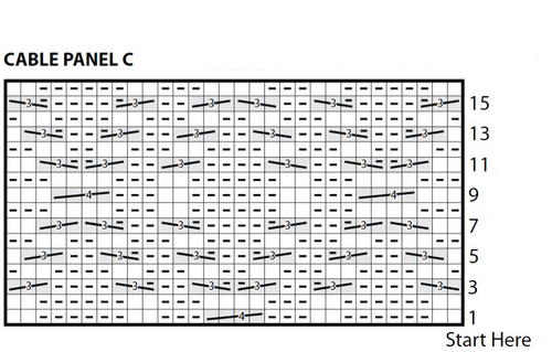Change to larger circular needle and proceed in Cable Pat as follows: