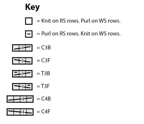 1st row: (RS). K4. C4B. P3. K2. P6. K2.