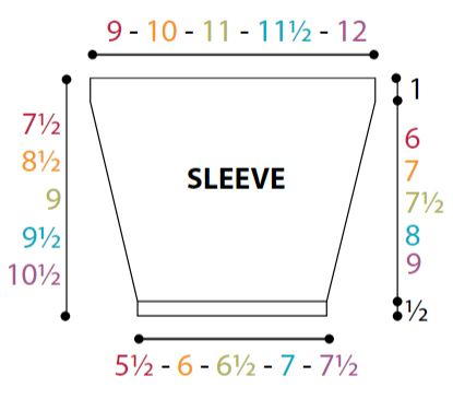 Cont even until sleeve from beg measures 6½ (7½-8-8½-9½) ” [16.5 (19-20.5-21.5-24) cm]. PM at each end of last row. Knit 6 rows more. Cast off.