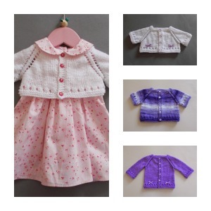 Perfect little sweaters for little girls or boys. Raglan sleeve cardis are so easy to knit and they fit babies so well because there are no bulky seams to get in the way. For a boy, just replace the eyelet rows along the cuffs and the bottom edging with plain knit. You don't even have to change the placement of the button holes.