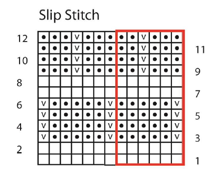 Row 10: K1, * k2, sl 1, k3; rep from * to end.