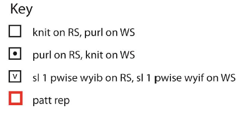 Gauge: 24 sts x 48 rows = 4” in Slip Stitch patt