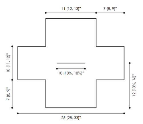 Finished SizeChest: 22 (24, 26)” [56 (61, 66) cm], Length: 12 (13½, 16)” [30.5 (34.5, 40.5) cm]