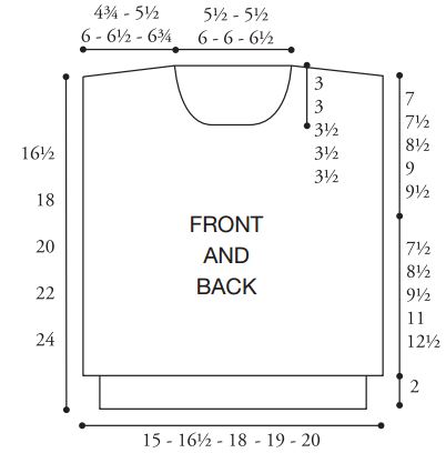 Place markers on front and back side edges 7 (7½-8½-9-9½) ins [18 (19-22-23-24) cm] down from shoulder seams. Sew in sleeves between markers. Sew side and sleeve seams.