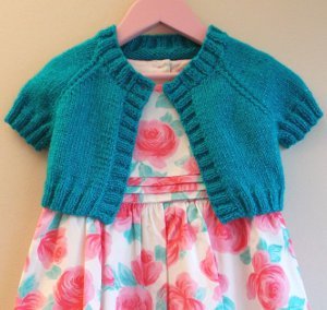 This is a cute girls sweater with picked up front bands and classic raglan styling. While the author designed this sweater to fit a 3 year old girl, it should be simple to alter any raglan sweater pattern to create this bolero. Just use a standard raglan pattern and crop the waist by measuring how long you want it between the armpit and the hem, and then also cropping the sleeves.
