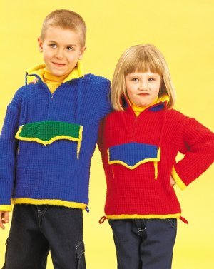 These bold and bright Sporty Zippered Pullovers are sure to become a staple in your child's wardrobe. This cute and colorful kid's sweater pattern features an elastic waist band, practical half-zippers, and a fun pouch to carry all his or her belongings. Use primary colors for a back-to-school cool look, bold solids for a spirited team vibe, or muted earth tones for a versatile pullover they'll reach for every day.