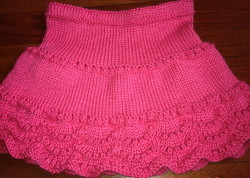 Your little girl will love to wear this Pretty in Pink Skirt. A bright pink color and a scallop edge makes this easy knit skirt pattern irresistible. It's the perfect addition to your sweetheart's wardrobe.