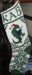 The KAB Christmas Stocking pattern Rebecca shows celebrates her upcoming marriage in 2011. Featured, is her husband's half of the monogrammed, "his" and "hers" stocking pair. The knitting pattern is an enduring way to celebrate a couple's union.