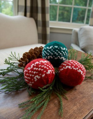 1. Holiday ball cover is worked in rounds on double pointed needles. The pattern is repeated 3 times in each round (once on each needle).