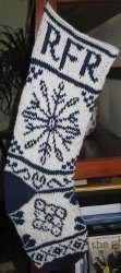 The RFR-RFB Stocking pattern Rebecca developed celebrates her upcoming marriage next year. Featured, is her half of the monogrammed, "his" and "hers" stocking pair. The knitting pattern is a lasting way to celebrate a couple's union.