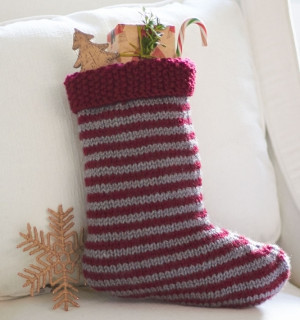 This knitted stocking pattern will fit all of your candy canes and Christmas cookies. Fill this classic Striped Stocking with little treasures and stocking stuffers. This easy knit stocking pattern has a simple, pleasing design that will fit perfectly with your home decor. Knit this striped pattern with different colors and make a matching set for the whole family. The little ones will love the treats inside the stockings, but your older relatives will love these handmade knits. Give these fun stockings as gifts that your family will be sure to love.