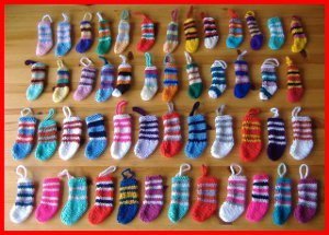 Love these tiny stockings! The designer has written very clear pattern instructions. The photo of all the tiny stockings gives me all kinds of design ideas! Love the designer's idea to make these for a school craft fair and to include sweets inside each of them! Great for charity and hospital Christmas parties.