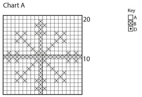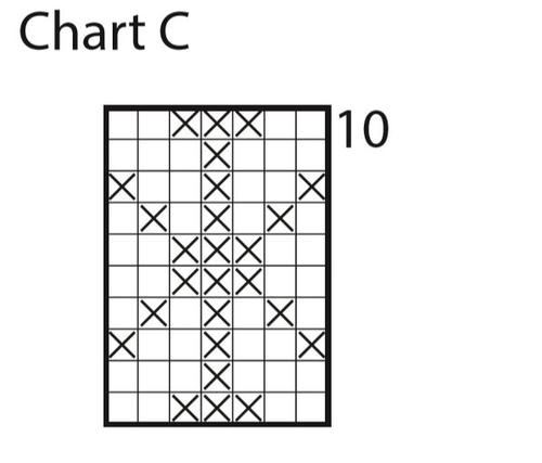 Cont straight until all 20 rows of chart have been completed, dec 1 st at end of last row, ending with RS facing for next row. 42 sts.