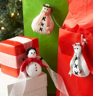 Double Duty Snowmen. They are made using double pointed needles and they do double duty as Gift Tags and Ornaments!!!