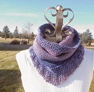 This beautiful lavender and ice blue knit cowl pattern is an easy knit you can whip up in no time. The Bridger Cowl has a simple repeating lace pattern perfect for a mindless afternoon on the couch. This cool hued beauty can be made in half a day, so knock yourself out and make two! The Bridger Cowl looks is light enough for indoor wear and warm enough for a brisk winter afternoon outdoors.