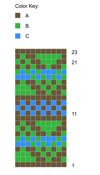 - RED HEART® Soft®: 2 balls in each 9344 Chocolate A, 4420 Guacamole B, and 9518 Teal C