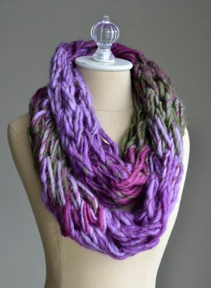 Shades of purple are complimented by mossy green hues in the Magic Arm Knit Cowl. Arm knitting is great because it involves super quick knits you can create in an evening and this simple arm knitting tutorial requires just two balls of super chunky yarn and can be completed in record time. Of course, another benefit of this knit cowl pattern is how gorgeous it will look on you. Soft, plush, and incredibly decadent, you'll love wrapping this purple beauty around your neck for winters to come.