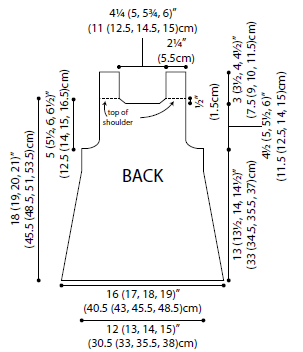- Finished Chest: 24 (26, 28, 30)” (61 (66, 71, 76) cm)