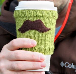 I mustache you a question: how can you live without this Mustache Cozy? Knit that bare coffee cup a sweater with a fun cozy pattern. Remember, you are saving the rainforest by not using those cardboard sleeves. This cozy knitting pattern is perfect for the man in your life or the mustache collector. Use worsted wool to keep your hands protected from the hot coffee perfection that is in your hand. Because it is re-useable, take your Mustache Cozy with you to work every day on different mugs every time.