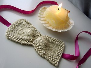 Catch a few extra Z's with this pretty homemade sleep mask. The Romantic Ruched Sleep Mask is a beautiful, simple mask adorned with a shiny satin ribbon. This project is a perfect yarn scrap buster, and takes almost no time to complete. The Romantic Ruched Sleep Mask uses the ruching technique, a knitting method where the yarn is pulled tightly together in a certain spot. This simple mask doesn't call for a specific yarn, but make sure to choose a soft, fuzzy kind that will soothe you to sleep.