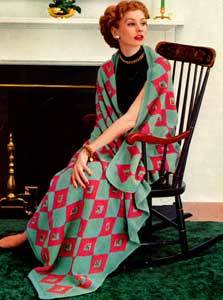 This is a lovely afghan pattern that requires some work of making 10 patterned strips, seaming them together, then making 6 single crochet rounds all around as a border. That said, if you made it you could update the colors to something like earth tones, or go bold with pink and black or white and black.