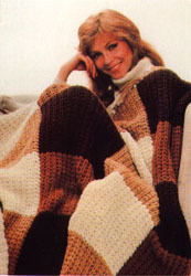This looks like a simple pattern to work up, and since you use two strands held together it should be nice and soft. I especially like that you work strips of blocks, then sew the strips together, rather than making individual blocks and having to sew them all together. A good stash buster project!