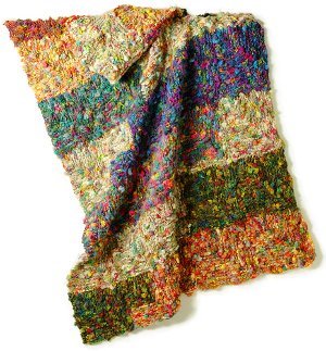 Yay, a blanket with different color sections but no seaming! I like that a lot, my kind of knitting project lol. I don't have the same textured yarn that was used for the blanket in the picture but it would be easy to find something locally that was a similar nubby style.